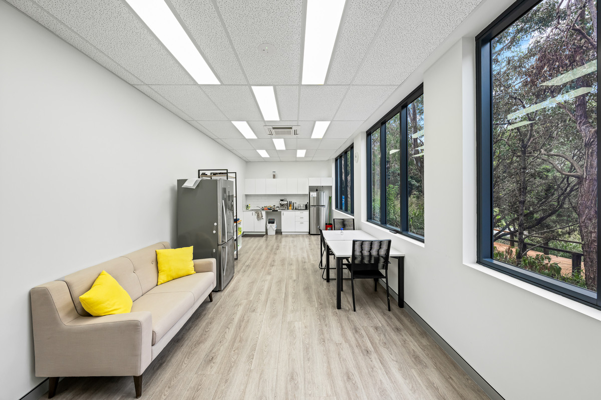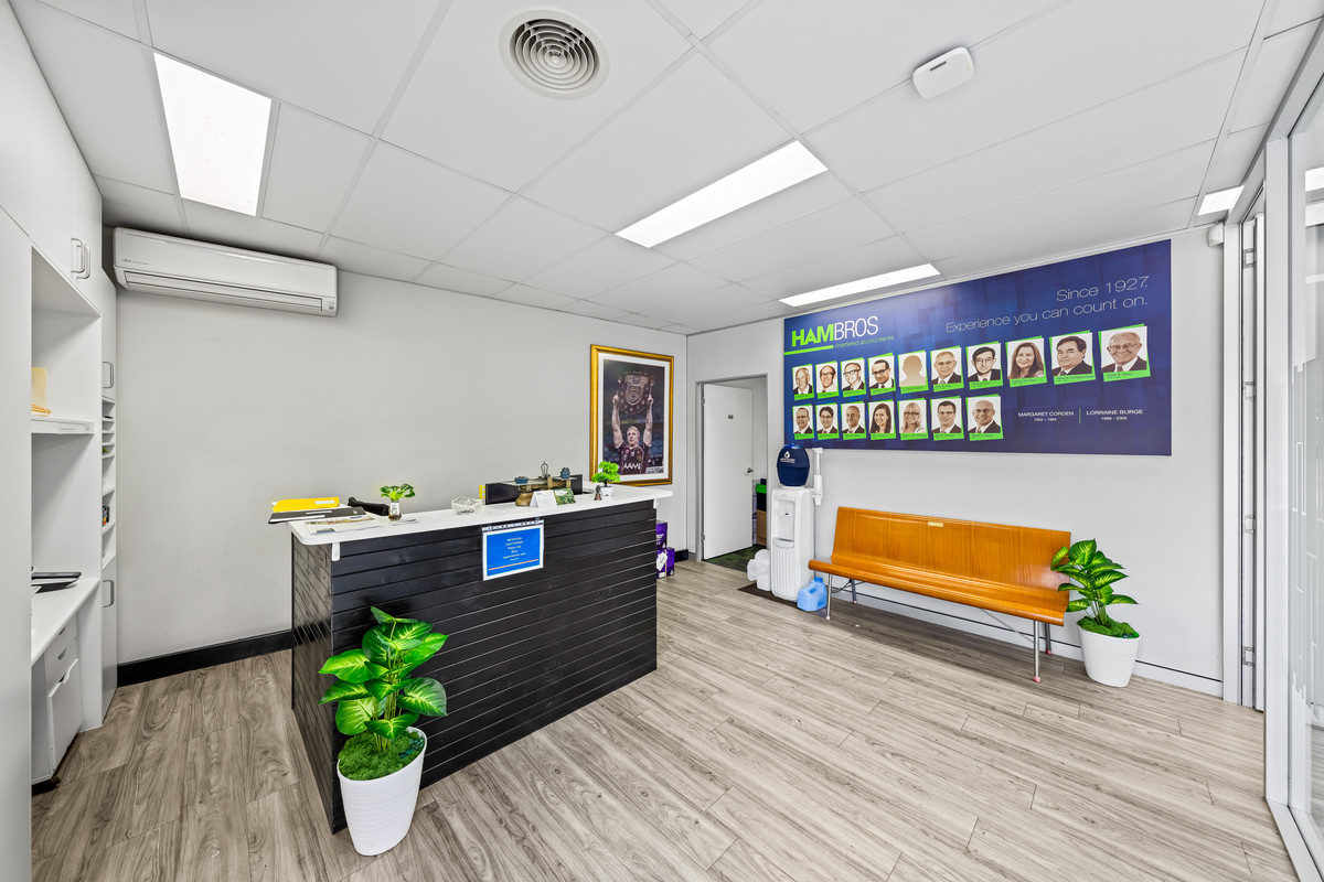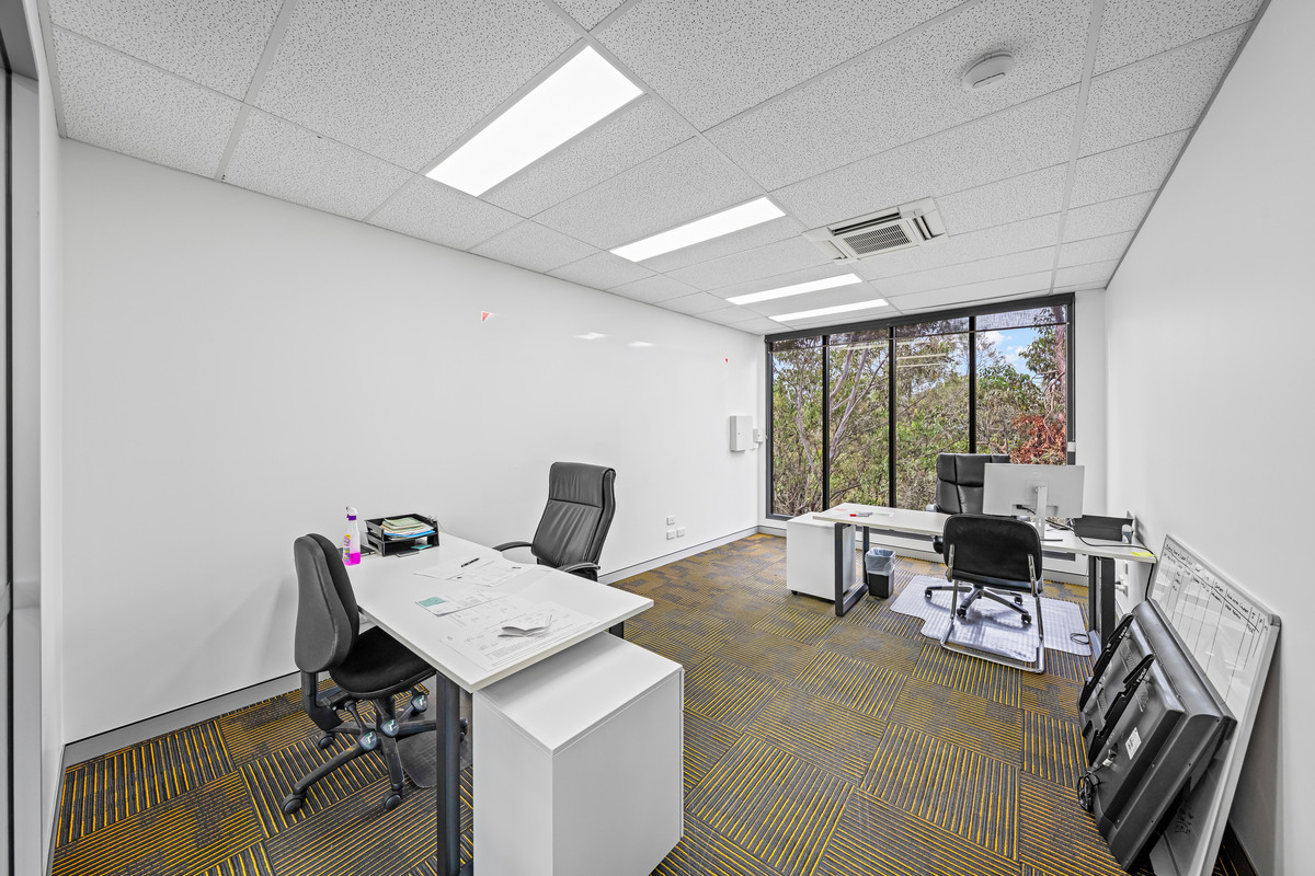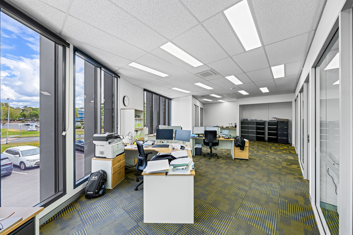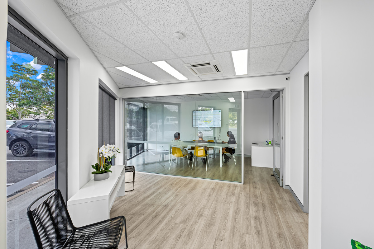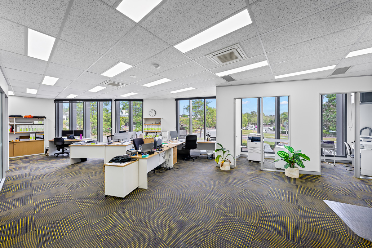 * Functional fit-out including open-plan area, private offices, and a boardroom/meeting room.